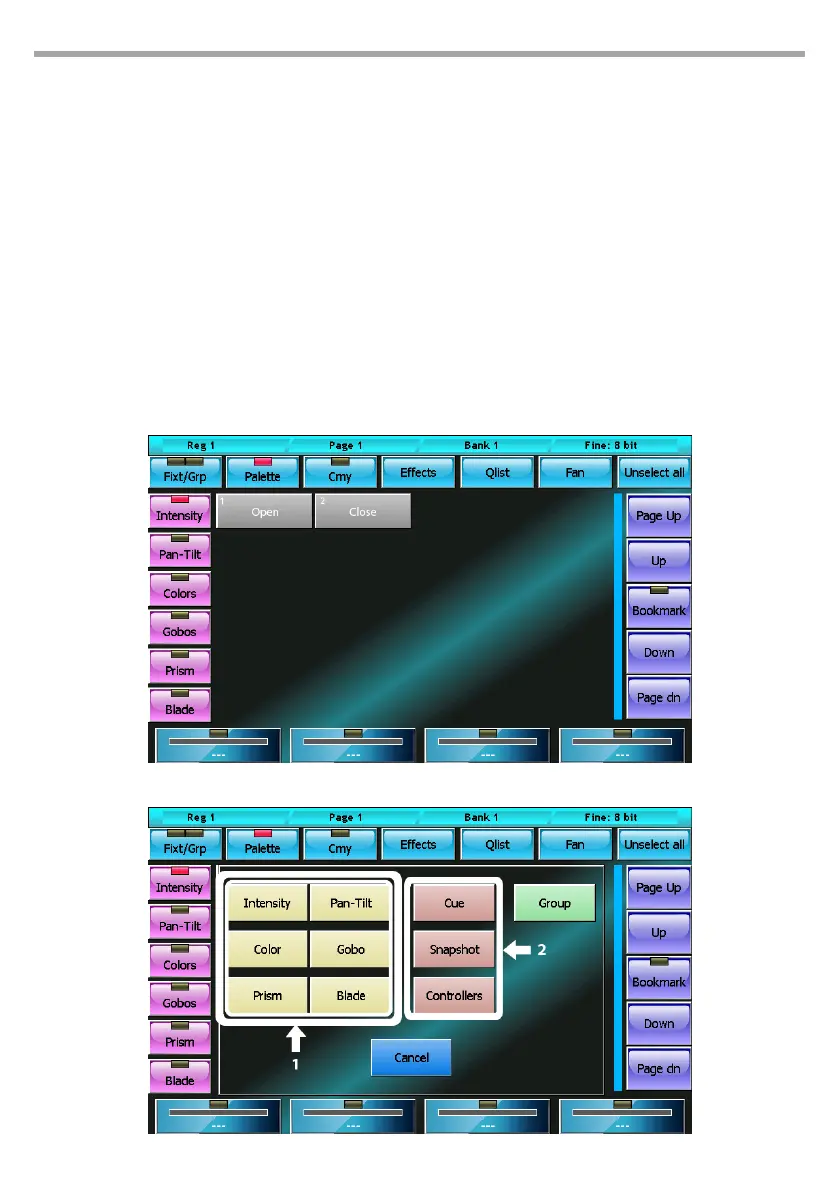 palette by recalling the Store menu which is done by clicking the Store key; select the type of palette