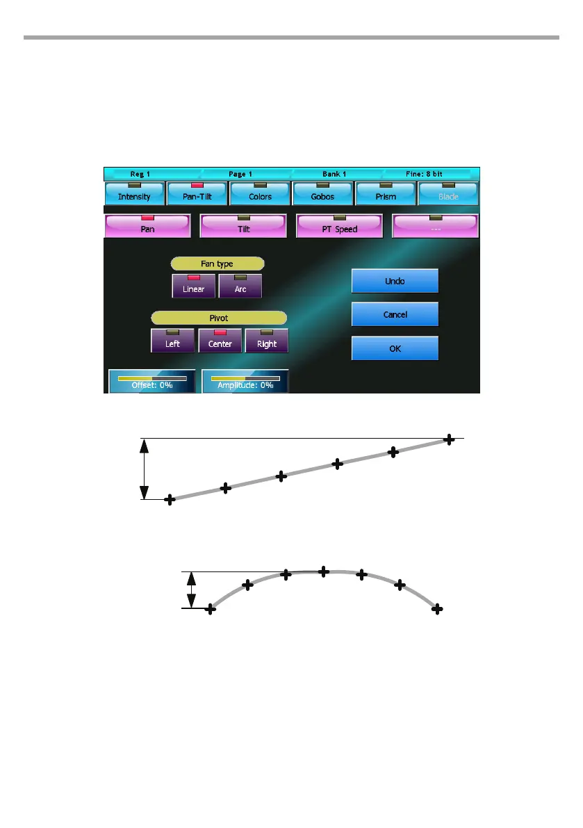 The fan feature assigns a sequence of values to the same attribute of the selected xtures. The sequence
