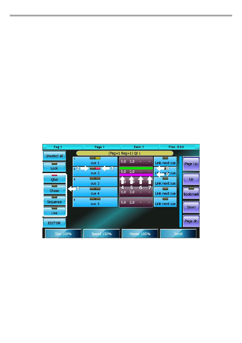 Cue list in sequence mode