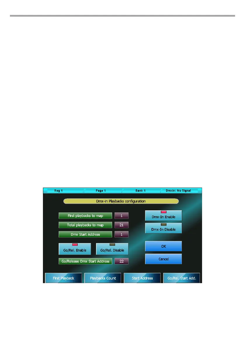 The DMX-In Playbacks Conguration window can be opened by pressing the homonymous button from