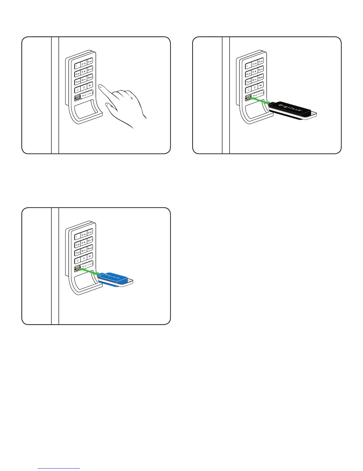 Note: The lock will accept only one 4-digit code or one ADA User Key (blue) at a time.