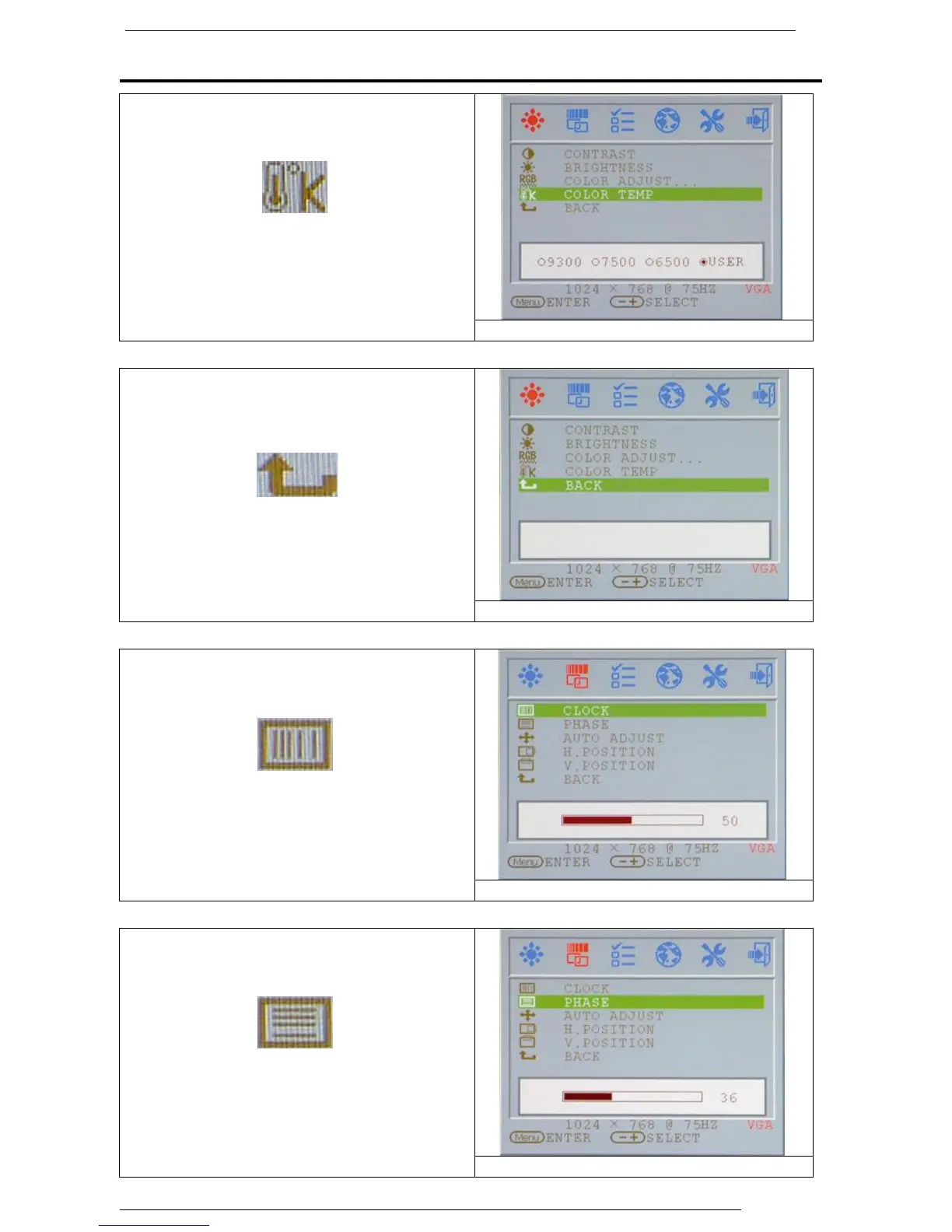 OSD (On-Screen Display) Menu Mode (PC Mode)