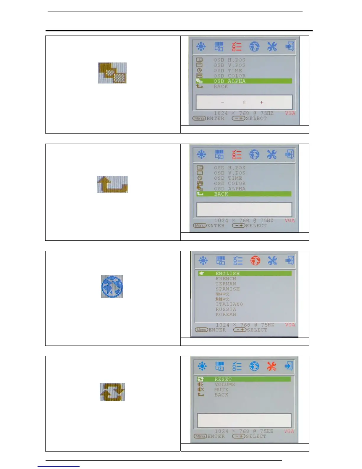 OSD (On-Screen Display) Menu Mode (PC Mode)
