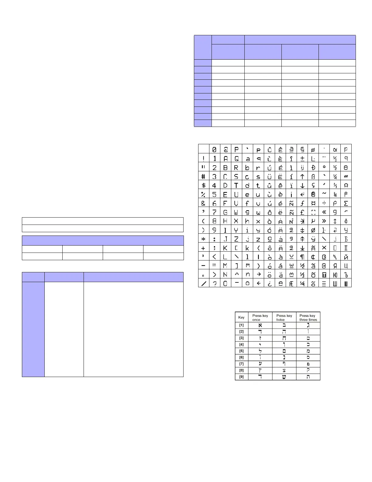 Table 10: Hebrew Keypad Letter Assignment
