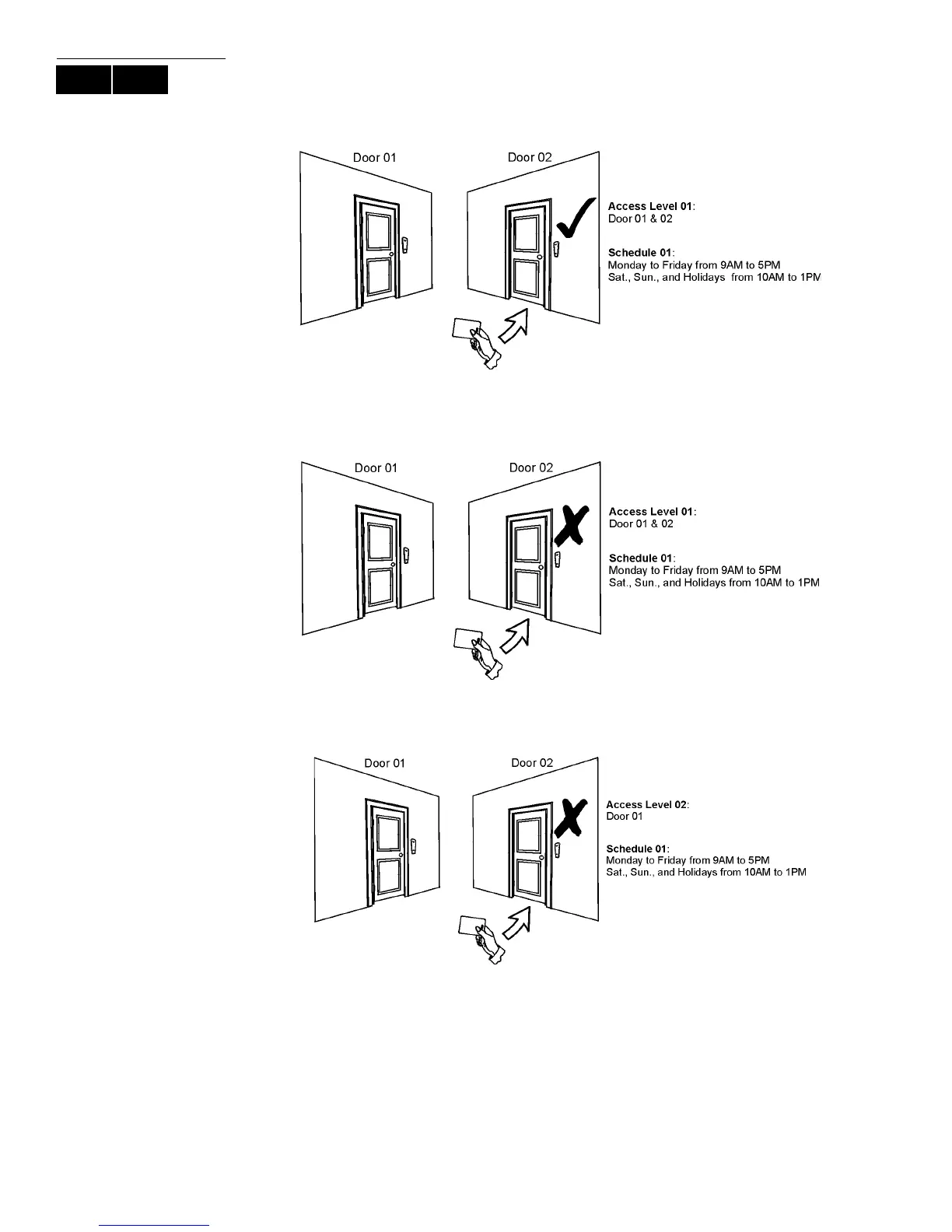 Bonnie’s Access Control card is programmed with Access Level 01 and Schedule 01. If