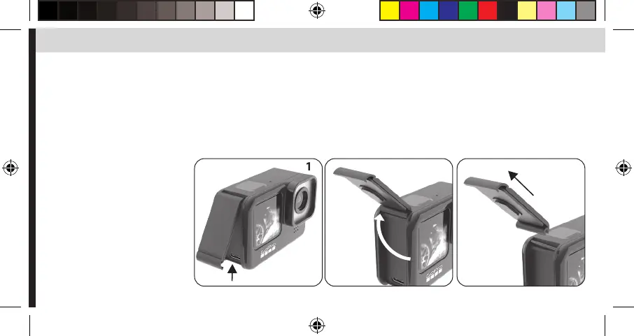 2. Die Abdeckung muss im 90° Grad-Winkel zum Kameragehäuse geönet sein. Die Abdeckung dann vorsichtig in