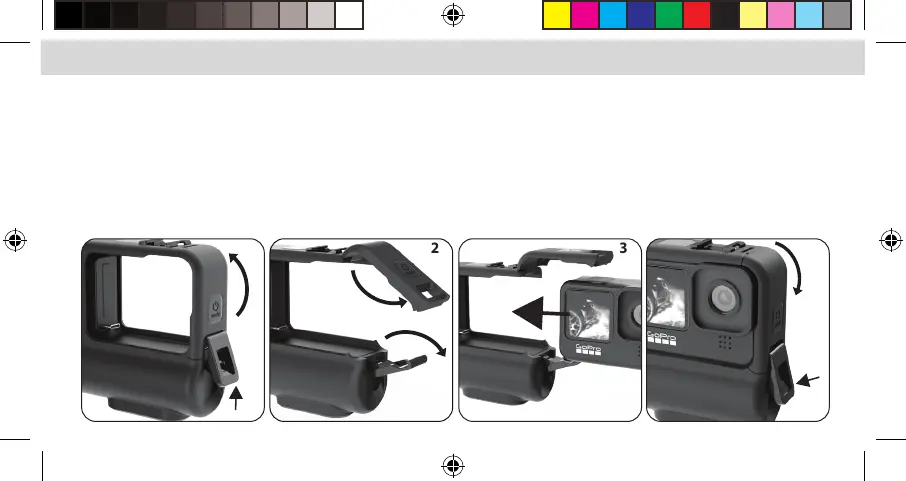 2. Soulevez le cadre pivotant vers la gauche de façon à pouvoir installer la caméra GoPro.