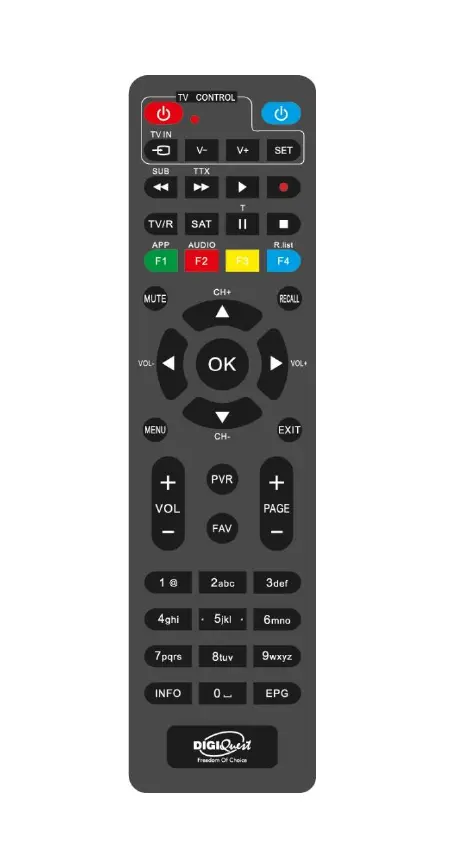 DiGiQuest DVB-T2 - Remote Control Operation; Remote Control Layout and Functions