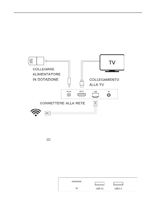 TF: micro SD (chip verso l’alto), USB 3.0, USB 2.0. Per il collegamento di