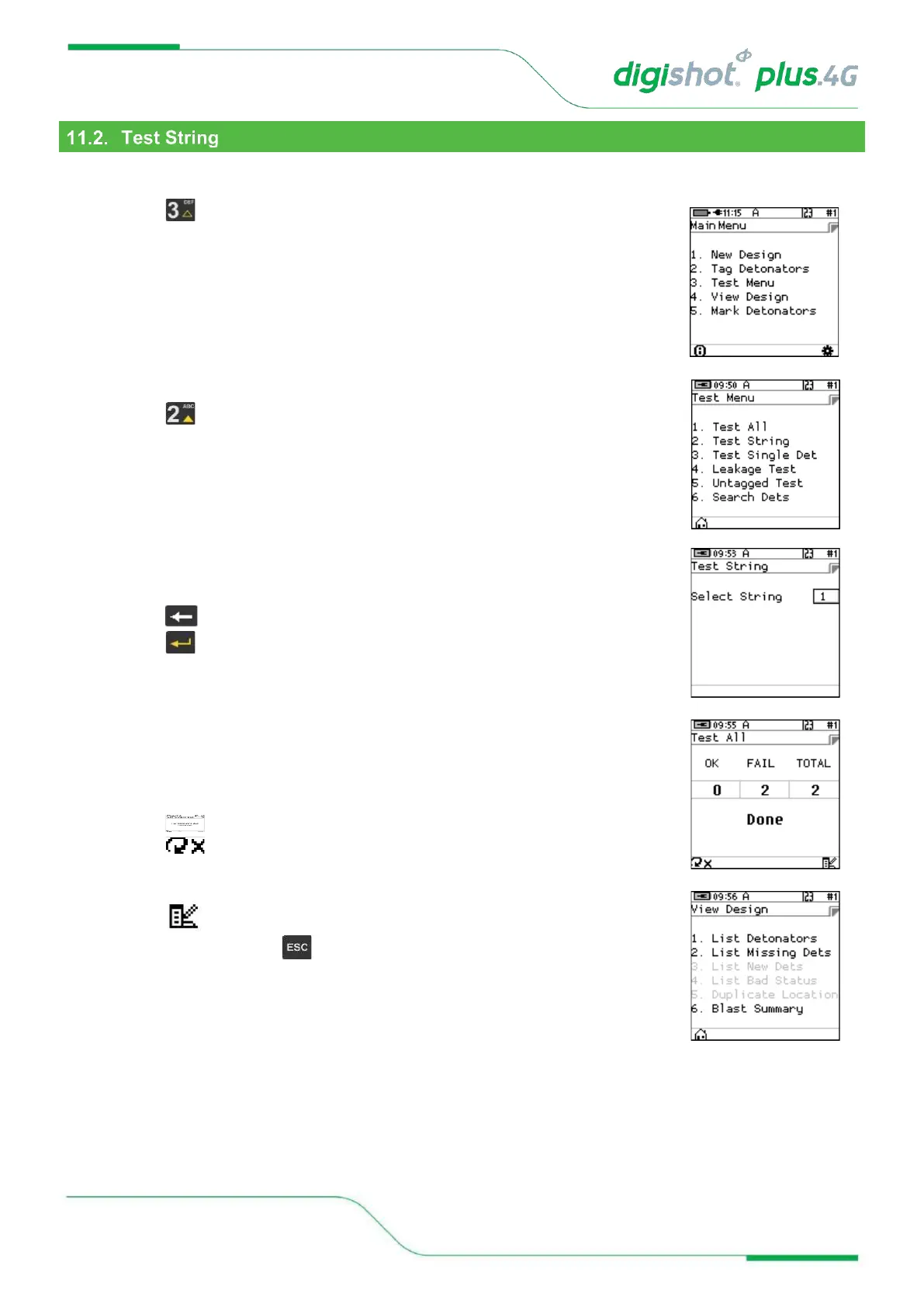 From the test menu, the user will have the option to test all the detonators connected to a String
