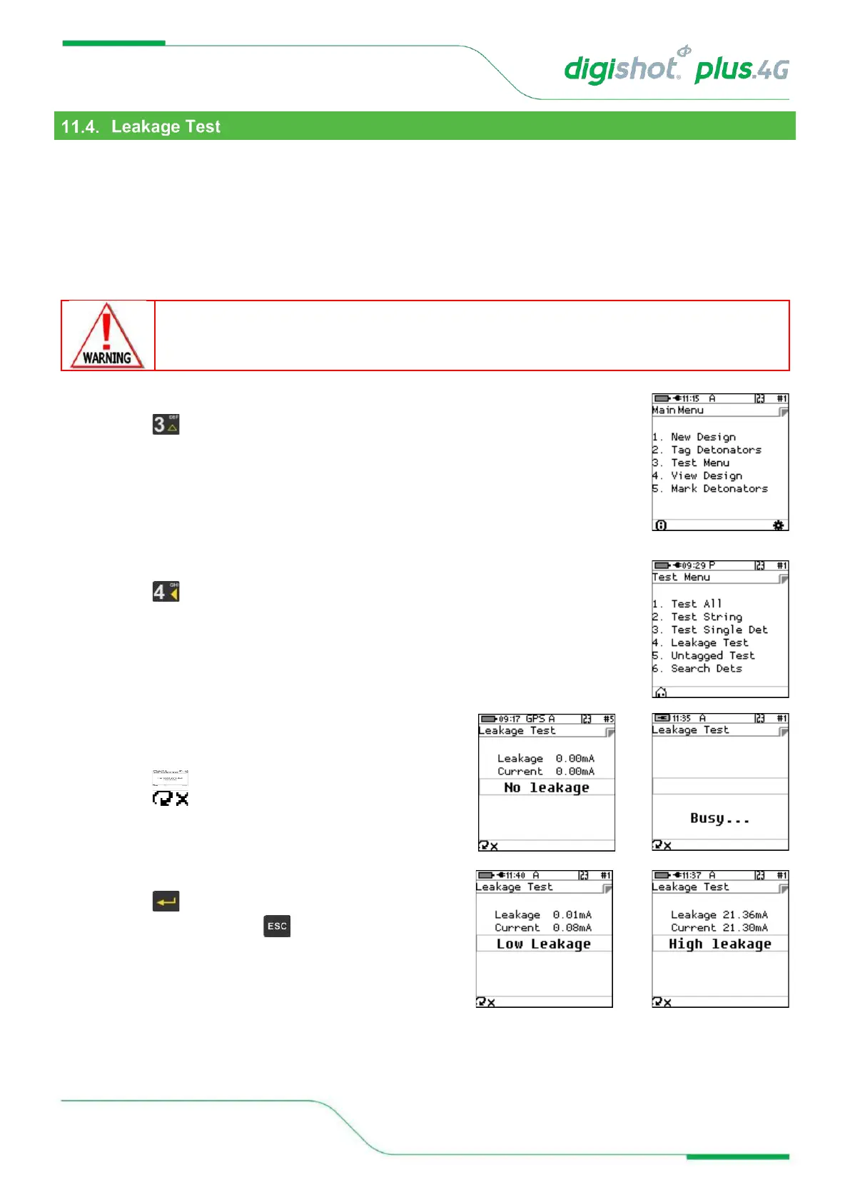 mA. A warning will be displayed when the leakage level exceeds the leakage warning trigger level as set by the