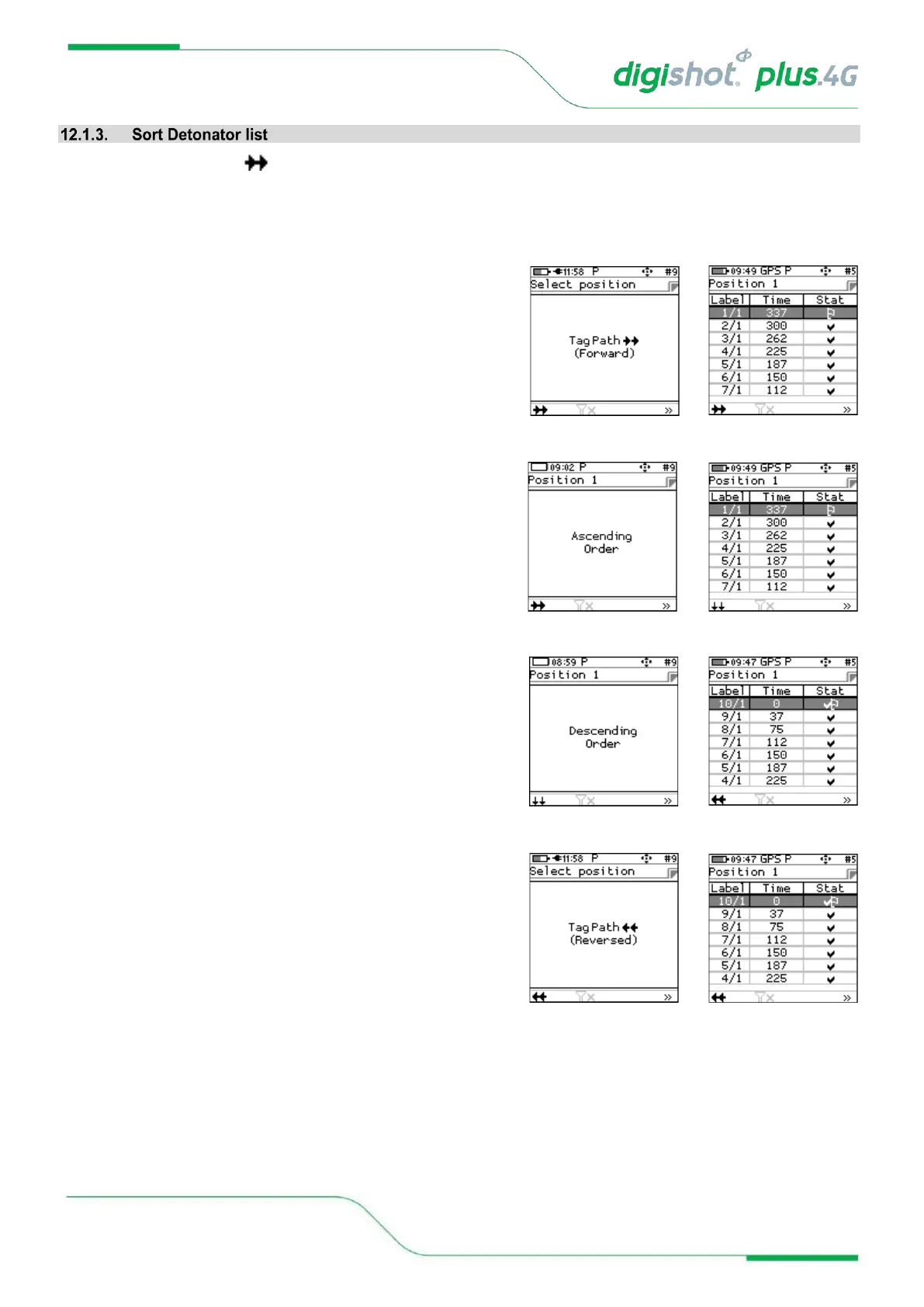 Press Sort Detonator List SoftKey to display the detonator list in the order as required: