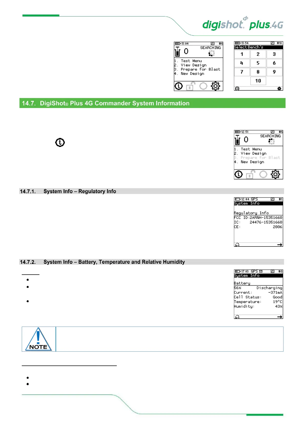 Temperature and the Relative Humidity as measured inside the DigiShot® Plus 4G Commander are displayed