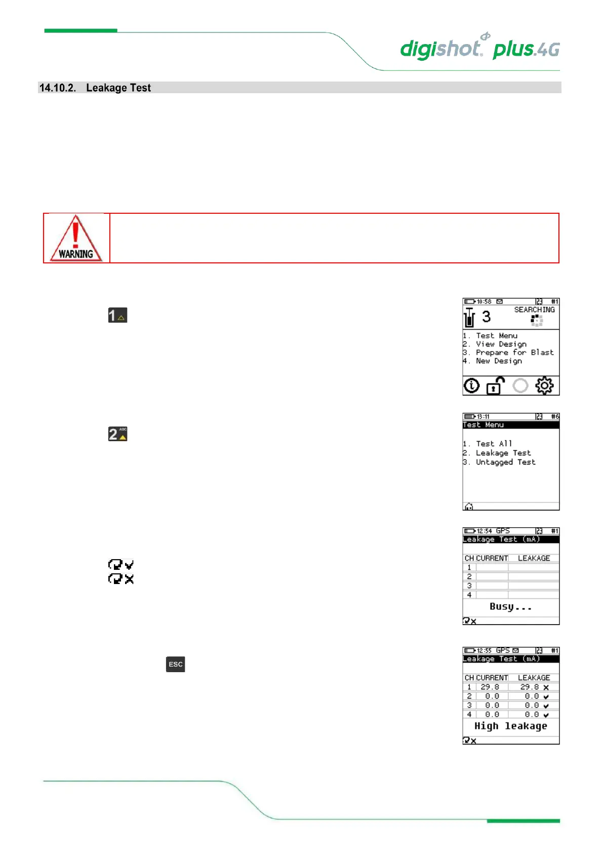 • Press SoftKey to select Leakage Test.