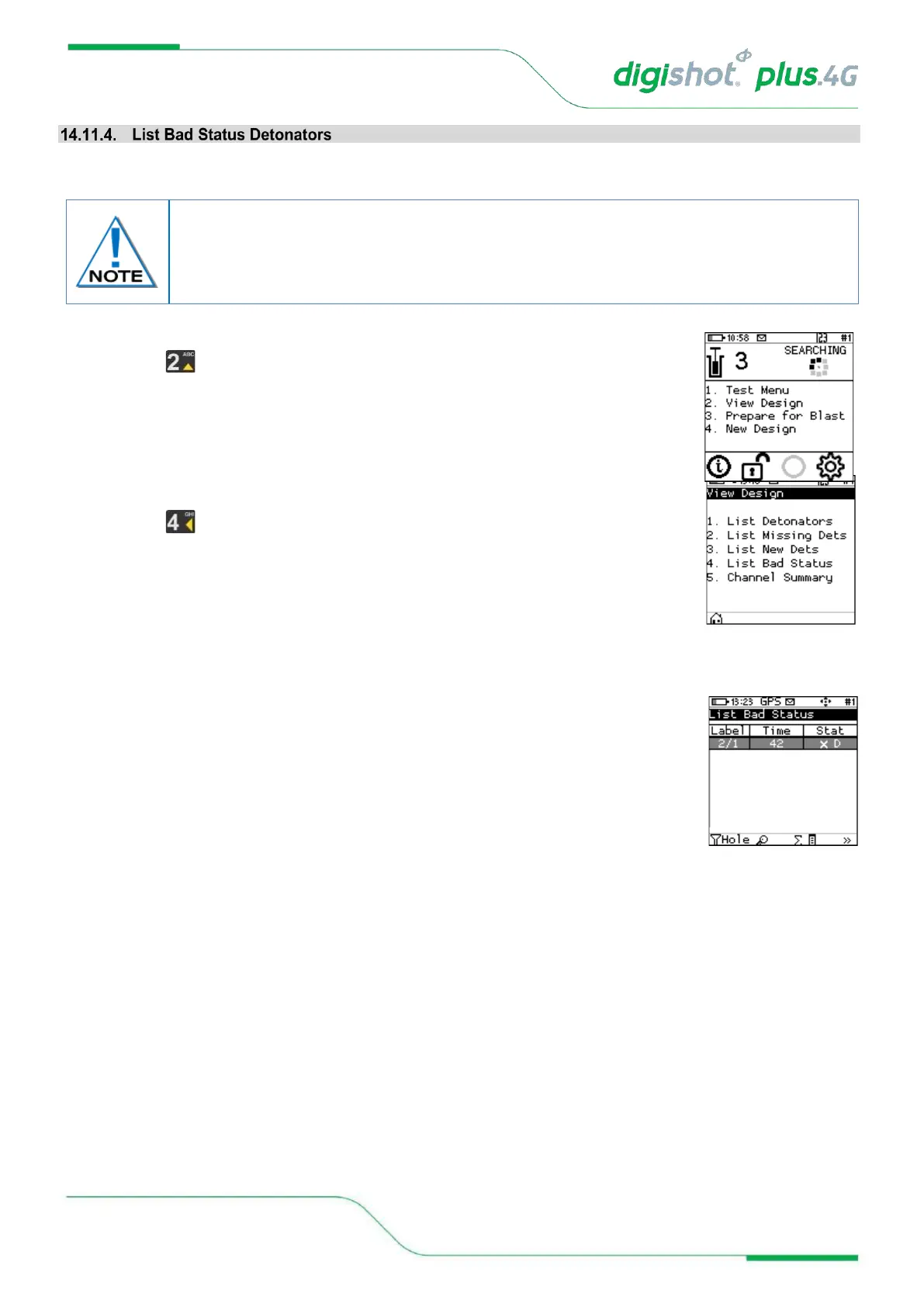 • Press Key to select List Bad Status Detonators.