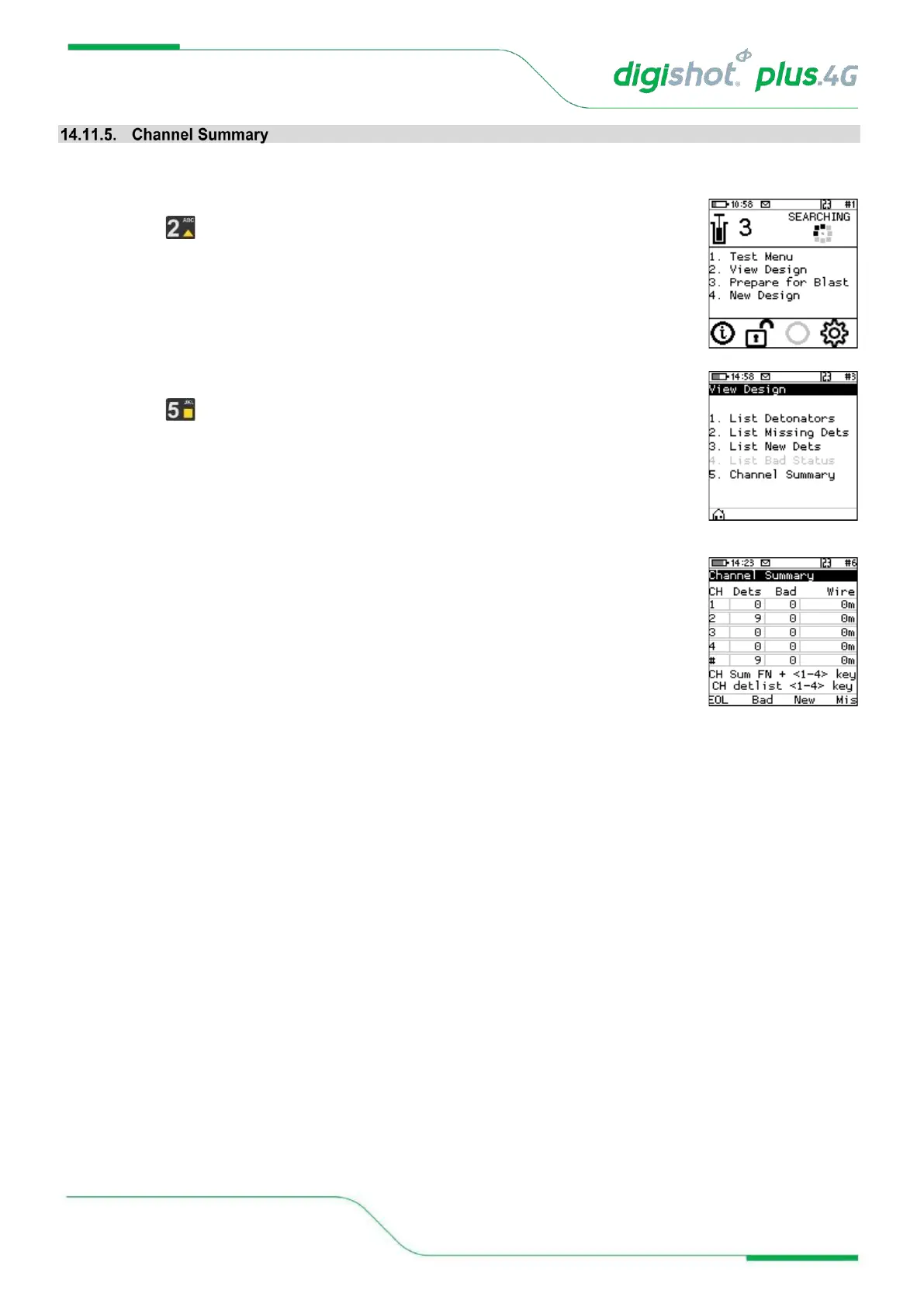 The Channel Summary menu allows the user to view summaries of the number of detonators on each Channel.