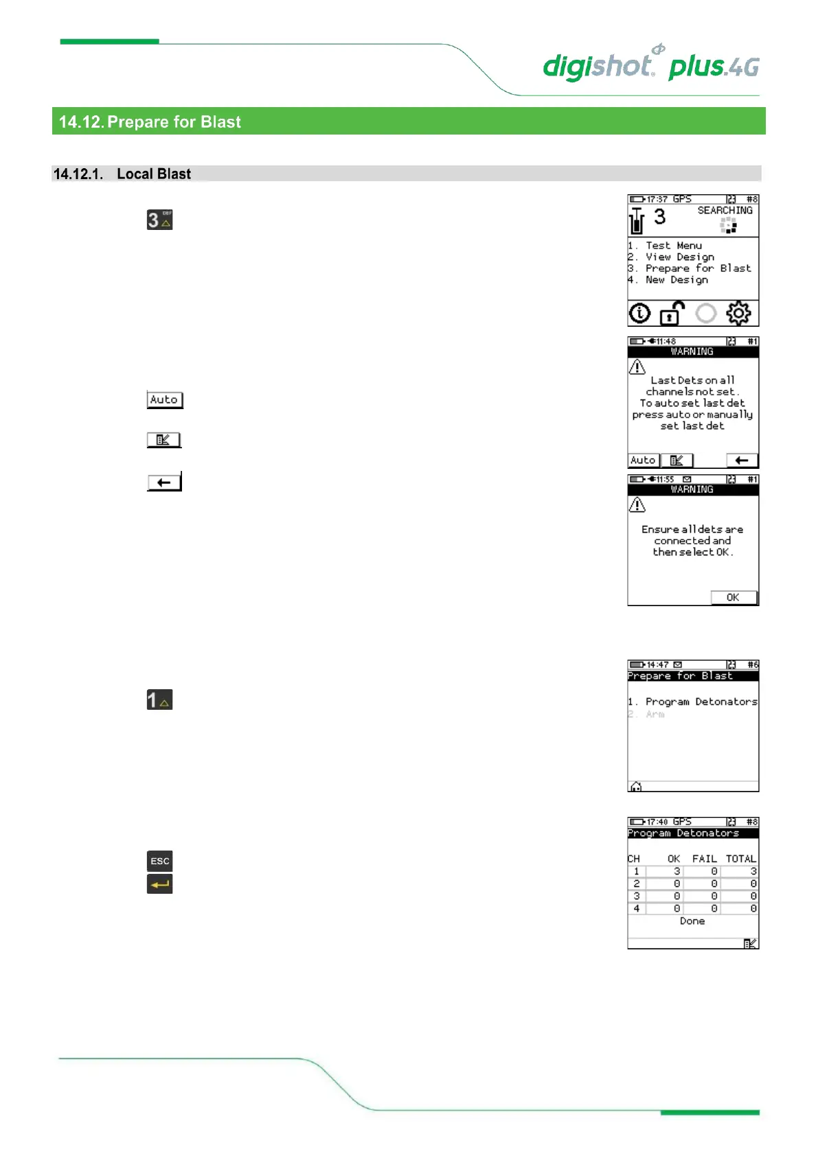 • Press button to return to Prepare for Blast Menu