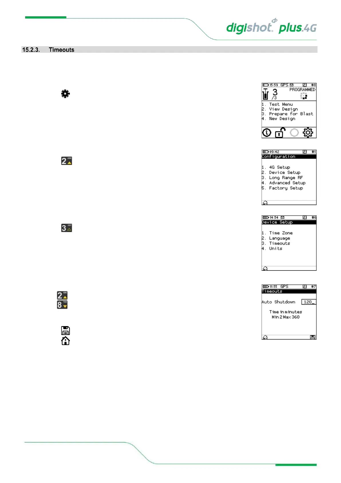 to conserve battery power. The user can set the idle time between 2 and 300 minutes.