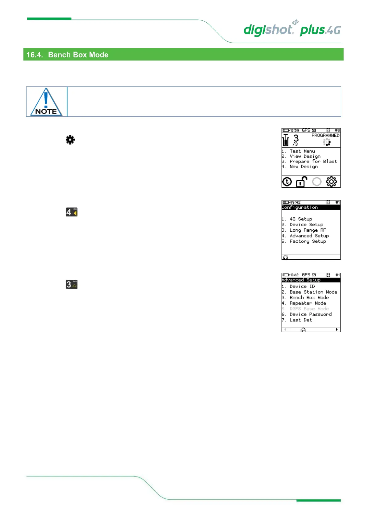 The Bench Box Mode menu allows the User to configure the DigiShot
