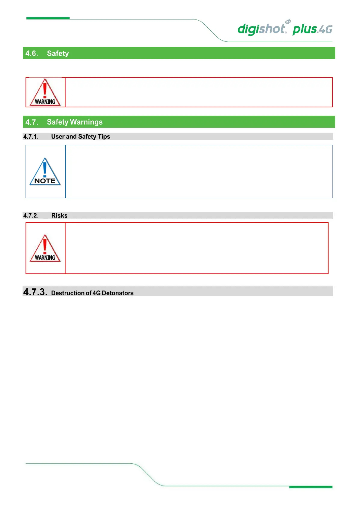 THE 4G DETONATOR TO ANY UNAPPROVED VOLTAGE SOURCE. NEVER CONNECT THE 4G DETONATOR