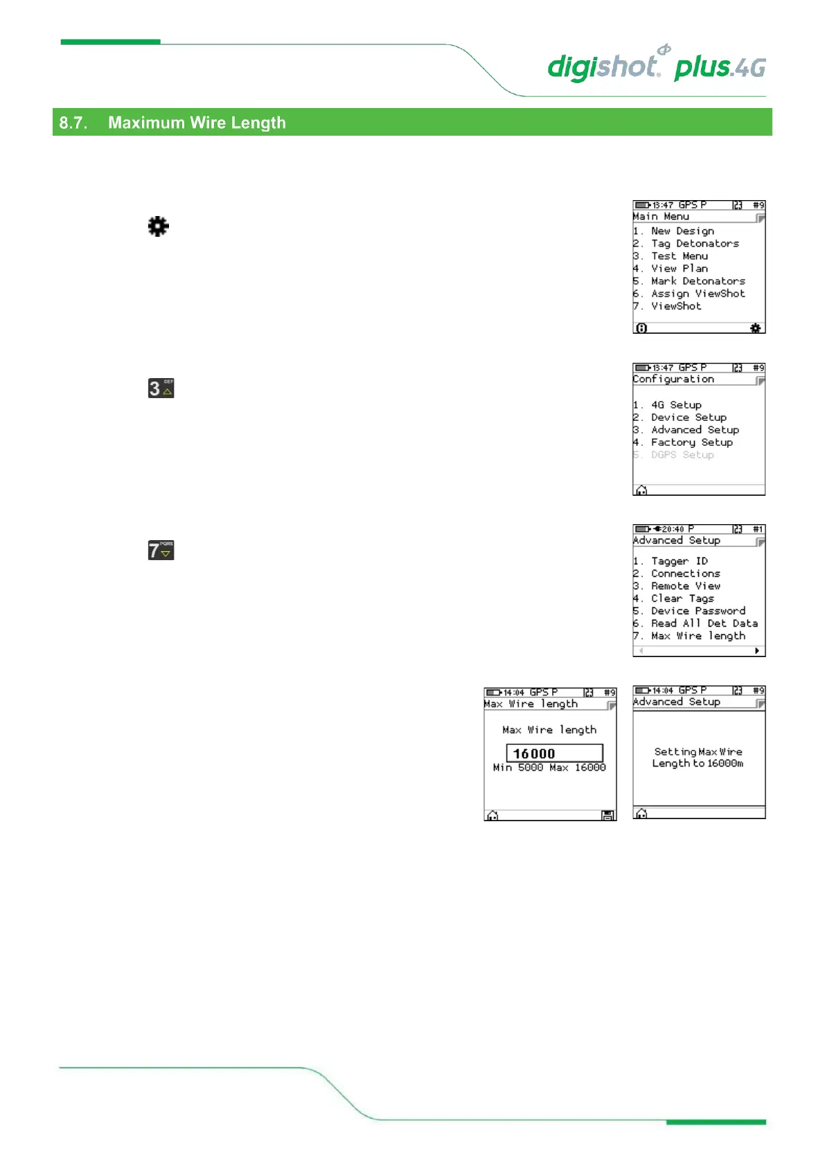 • Use numerical keypad to enter maximum wire length.