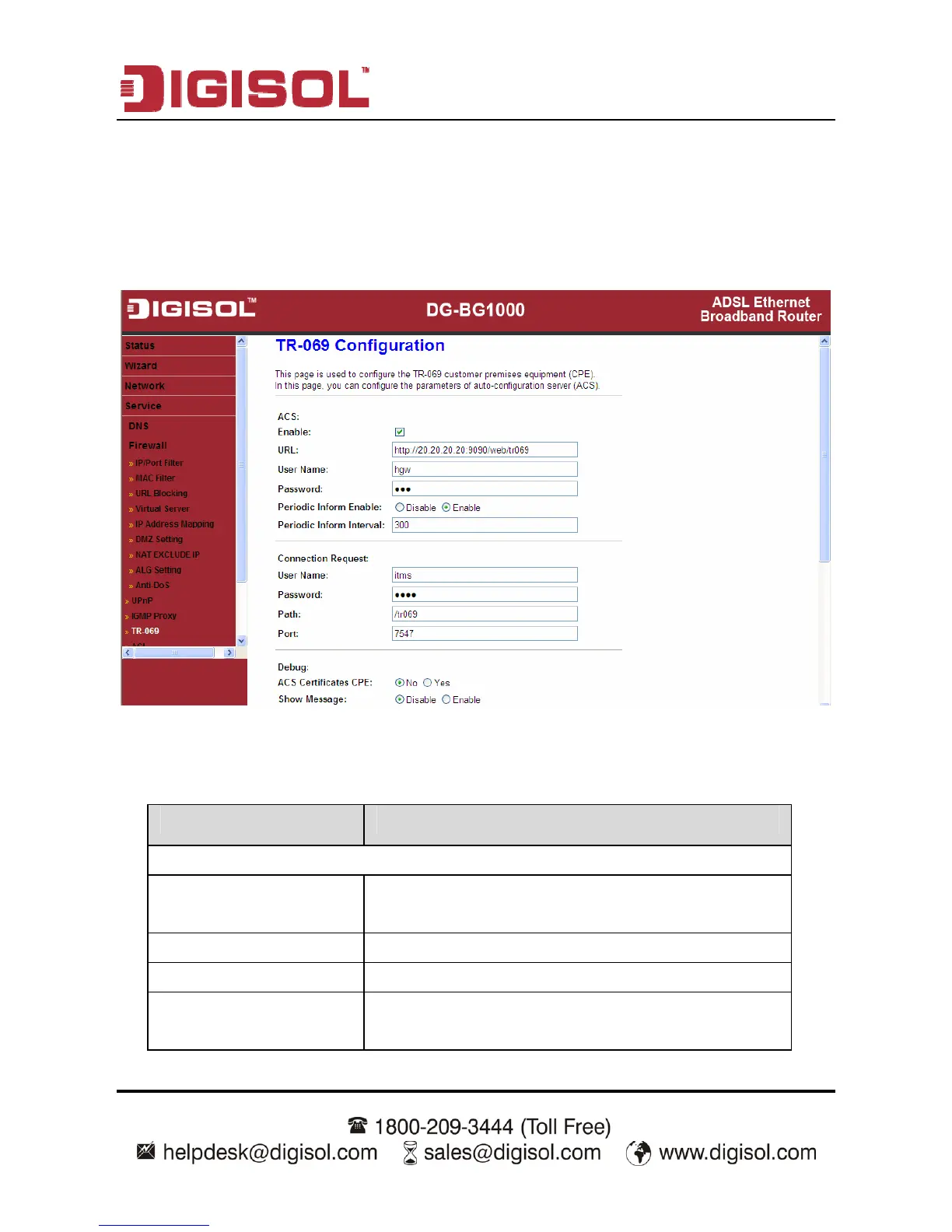 Choose Service > TR-069, the page shown in the following page appears. In this
