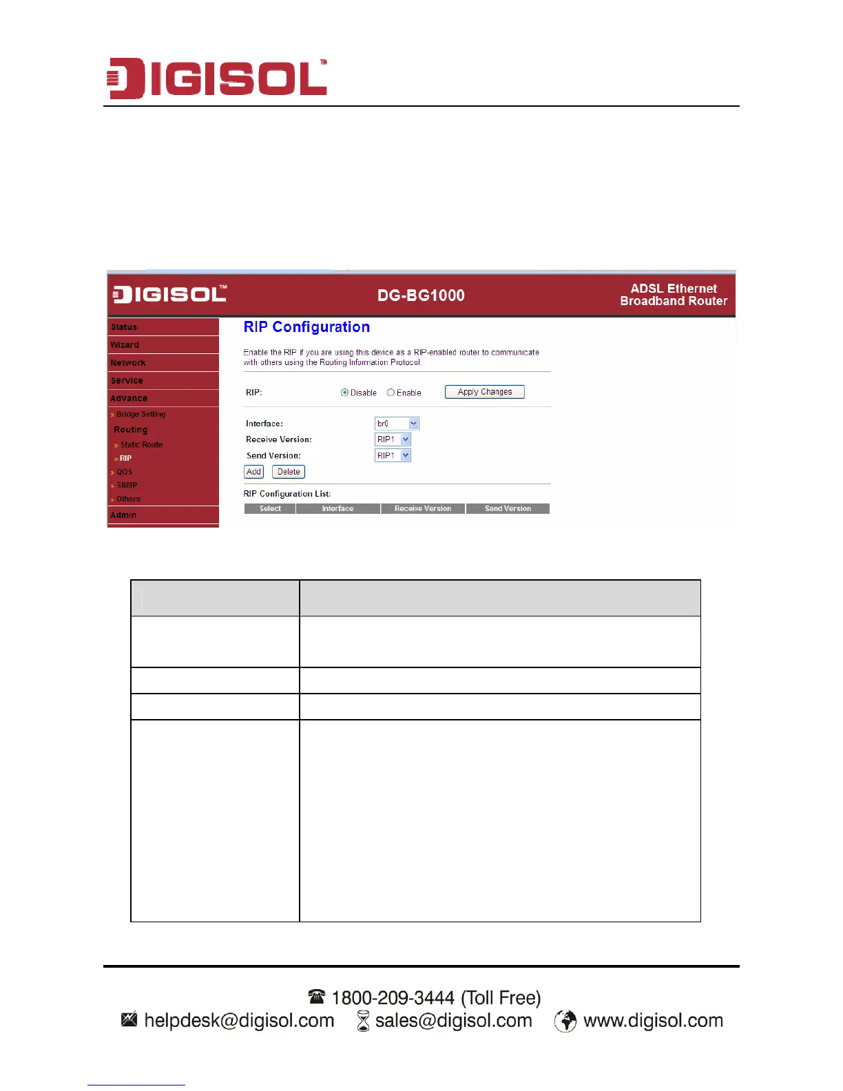 Click RIP in the left pane, the page shown in the following figure appears. If you are