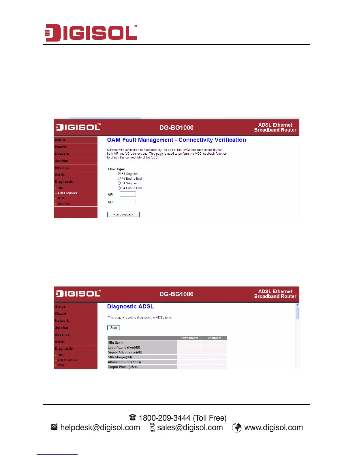 Choose Diagnostic > ATM Loopback. The page shown in the following figure