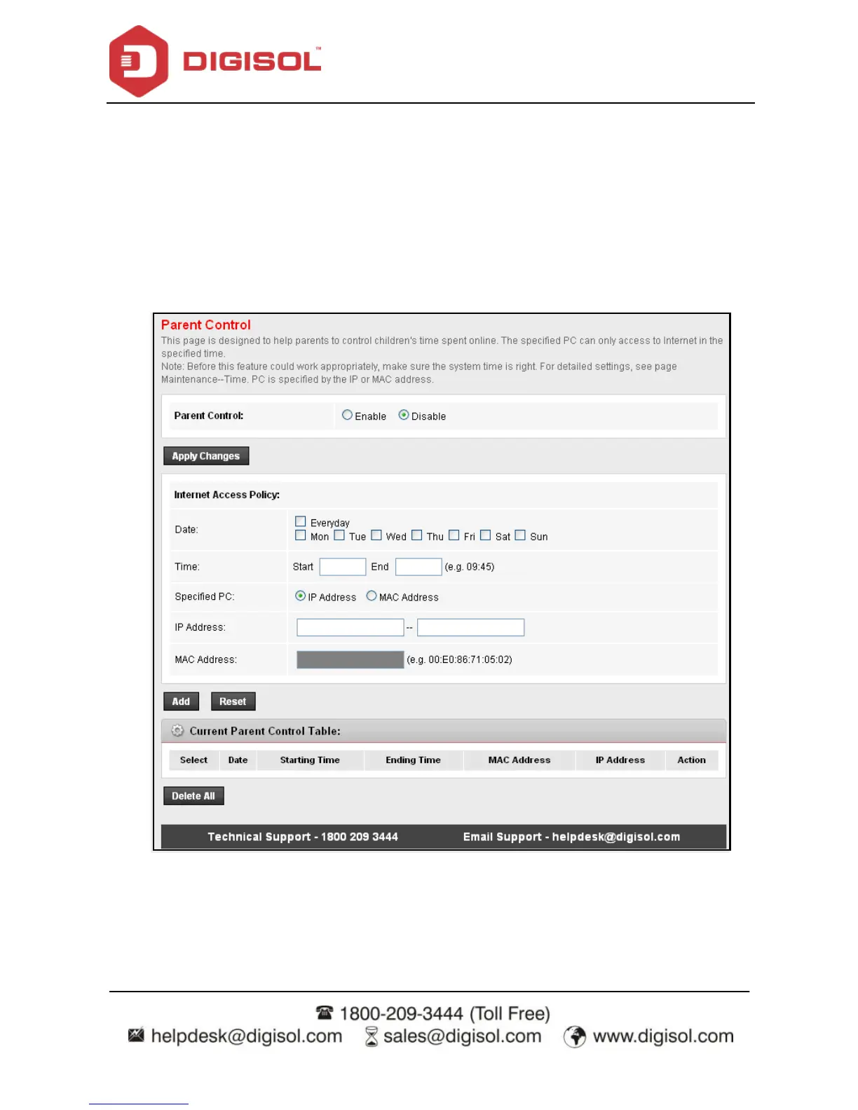Digisol DG-BG4100NU - Parental Control