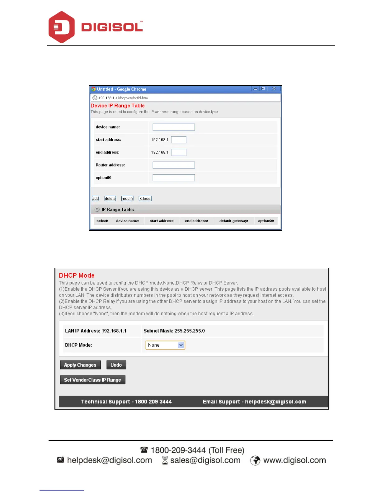 Click Set VendorClass IP Range in the DHCP Mode page, the page as shown in the following