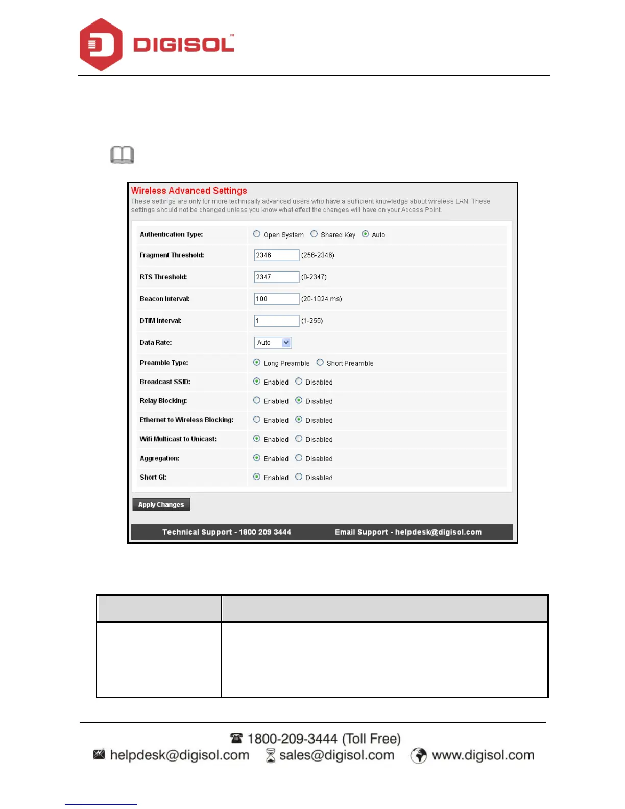 the wireless advanced parameters. It is recommended to use the default parameters.