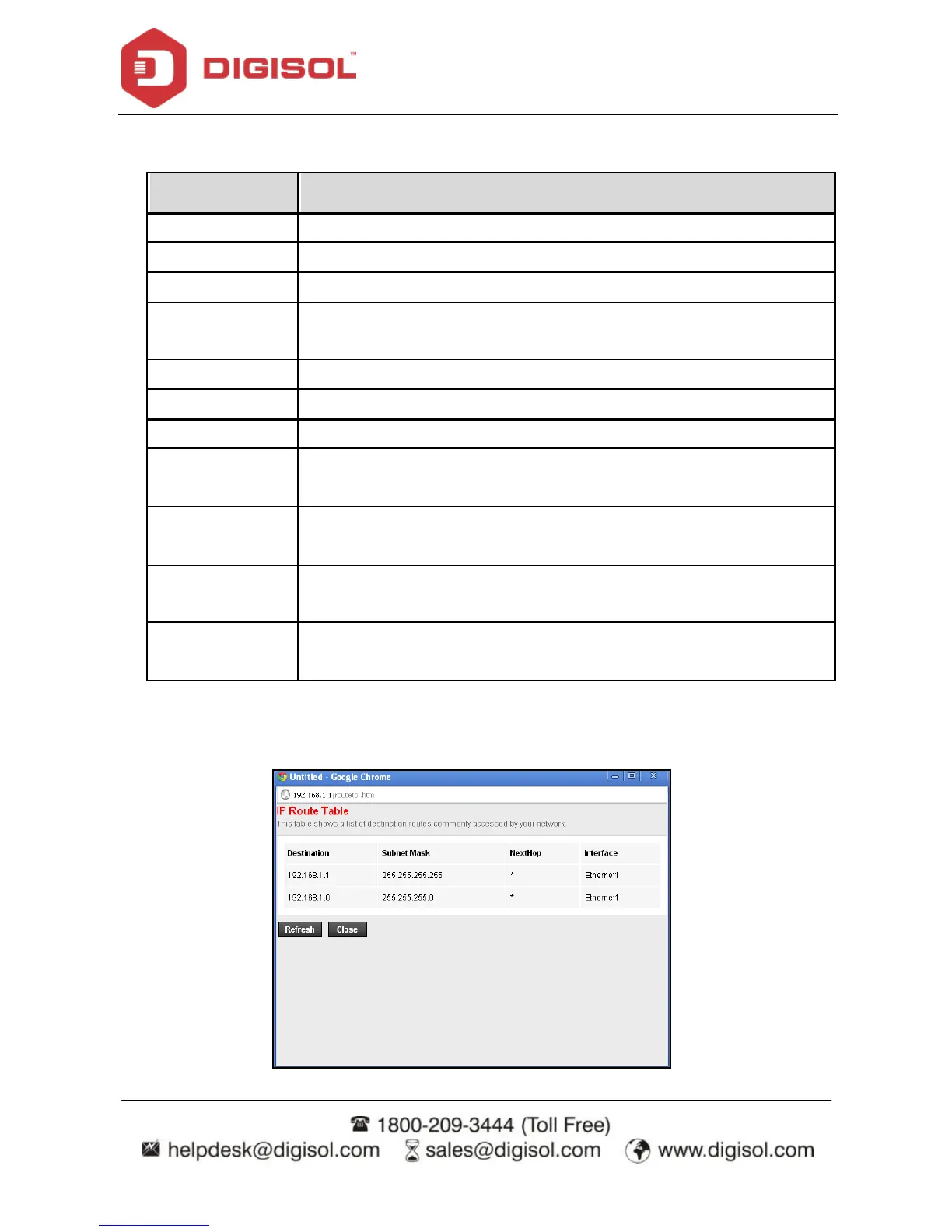 Click it, the IP Route Table appears. You can v iew a list of destination