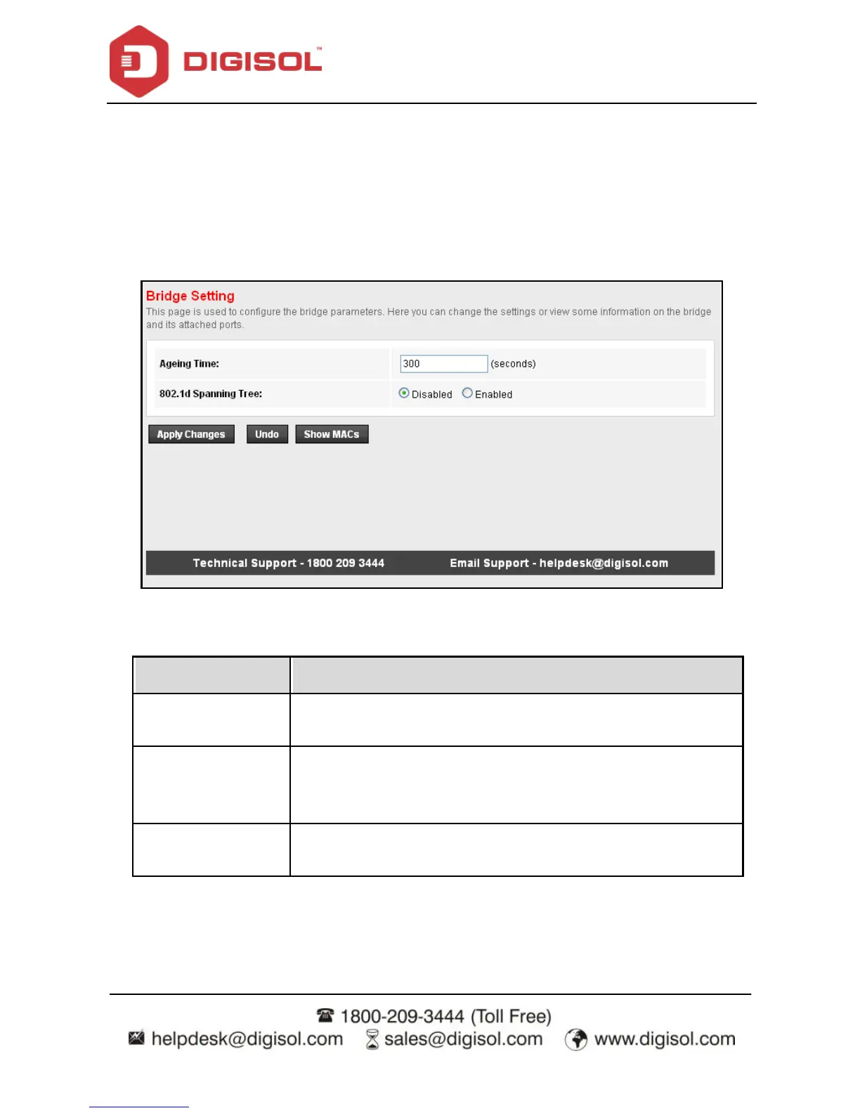 appears. This page is used to conf igure the bridge parameters. You can change the settings