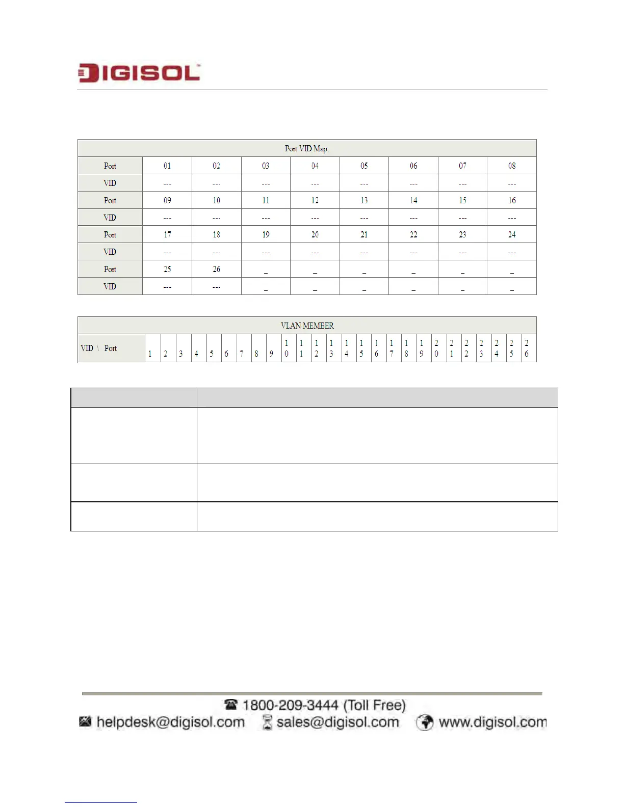 Port VID map shows the Port number corresponding to the VID to