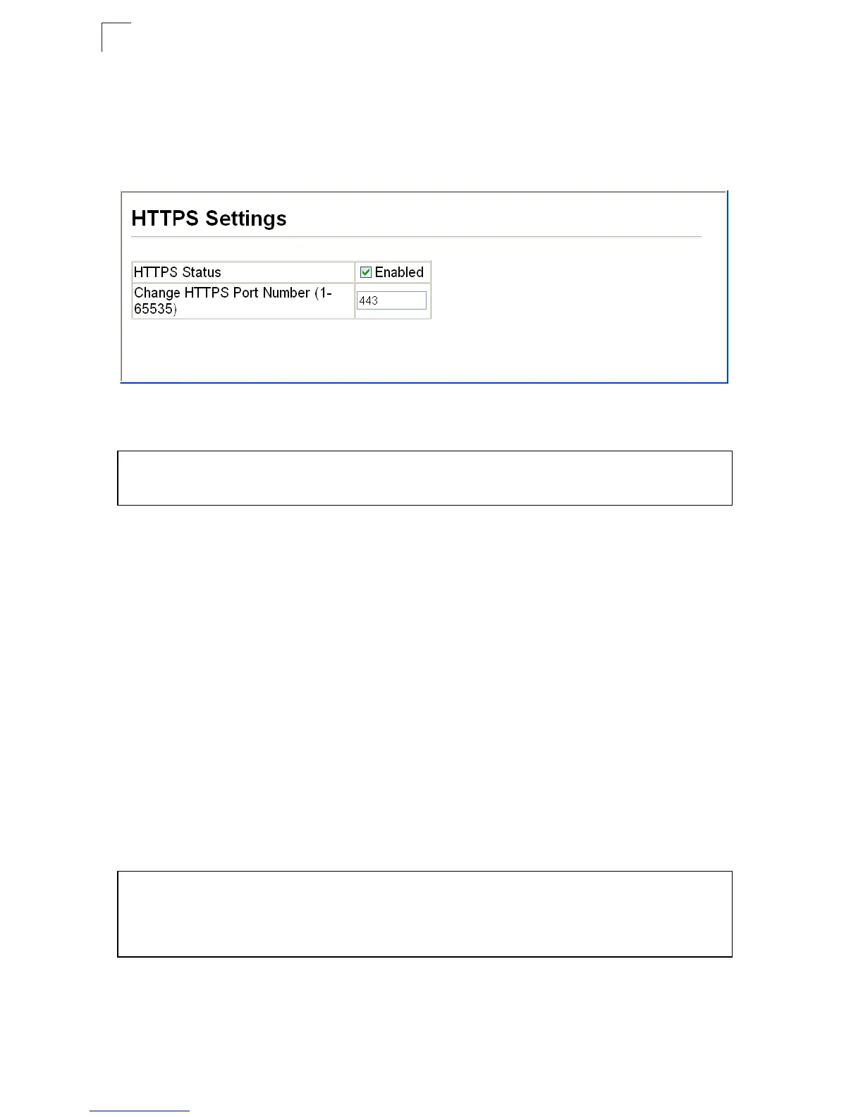 Web – Click Security, HTTPS Settings. Enable HTTPS and specify the port number,