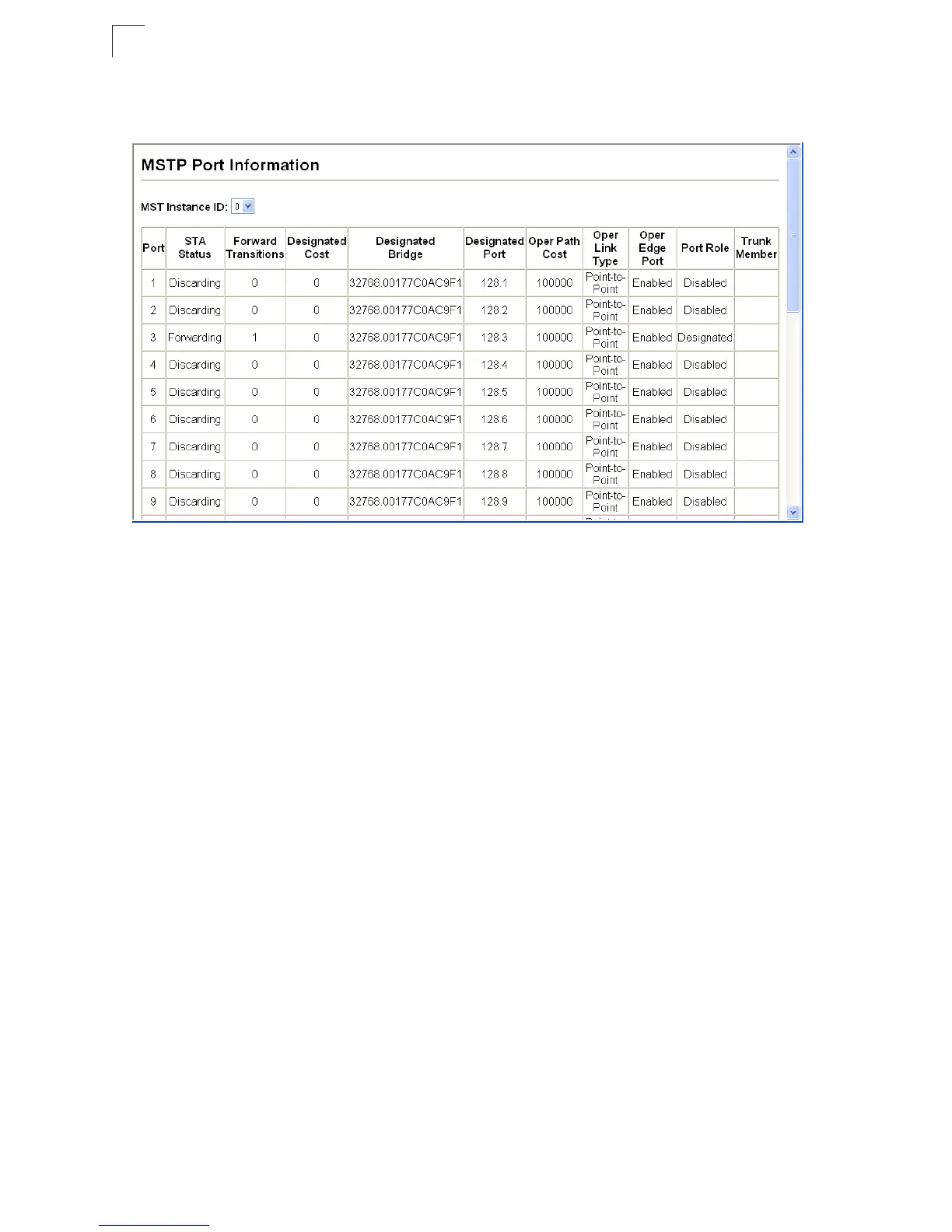 Web – Click Spanning Tree, MSTP, Port or Trunk Information. Select the required