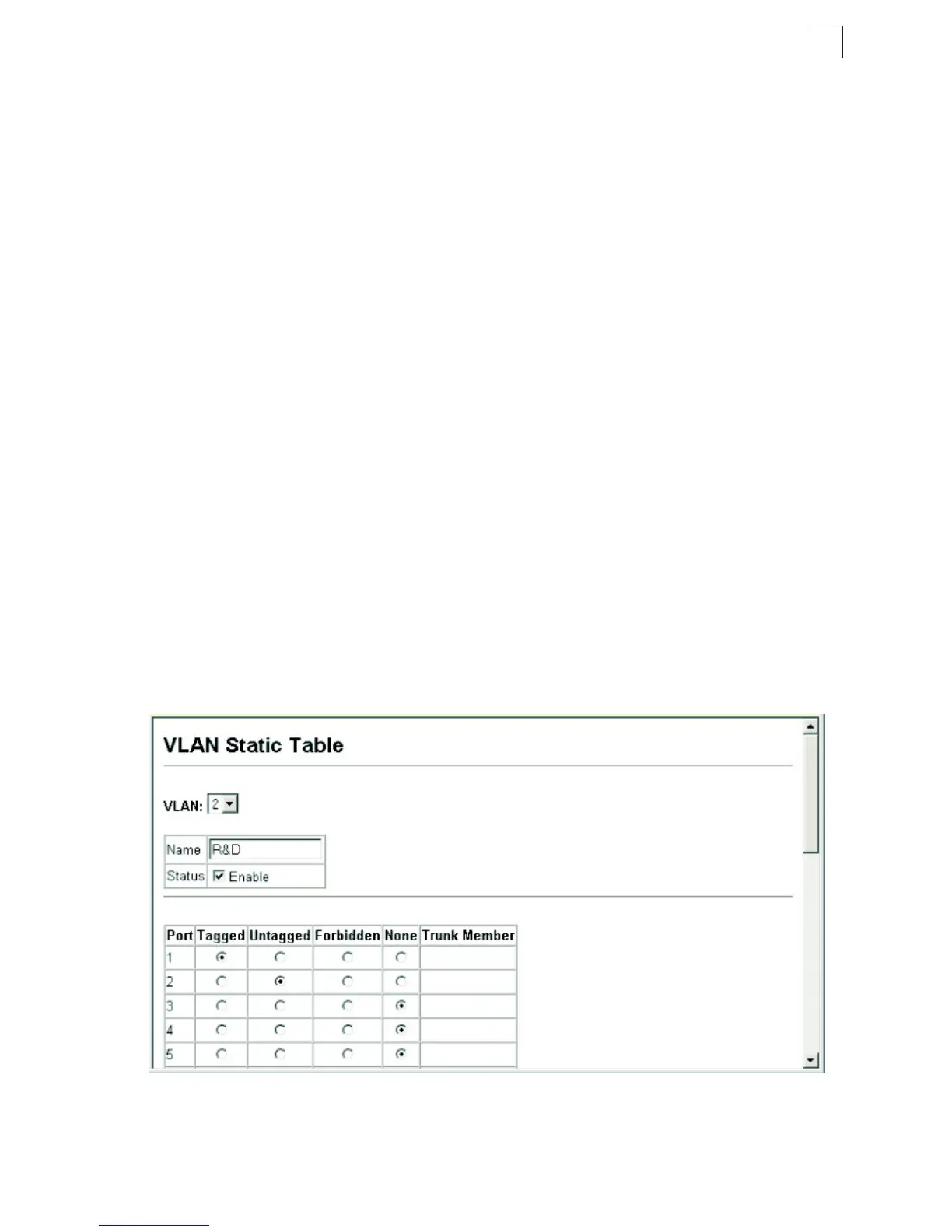 selected VLAN, use the last table on the VLAN Static Table page.