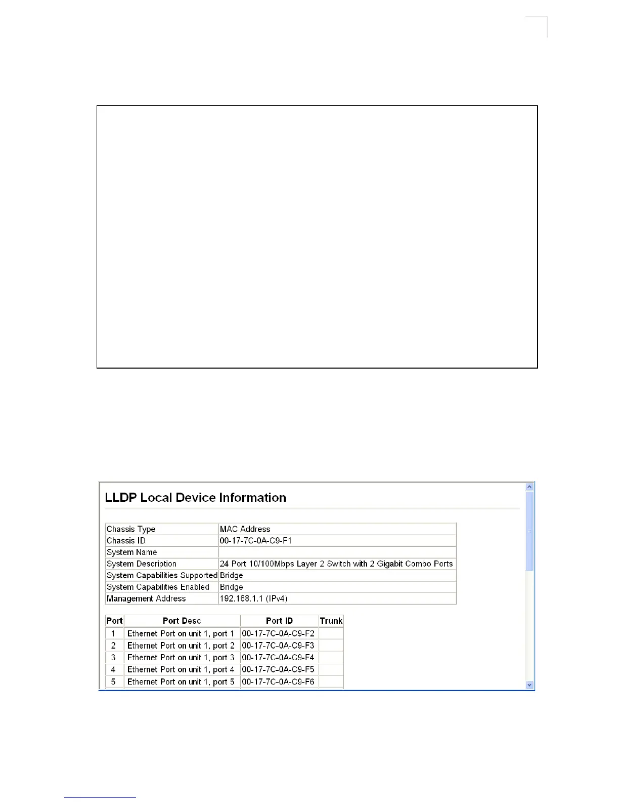 switch, such as its MAC address, chassis ID, management IP address, and port