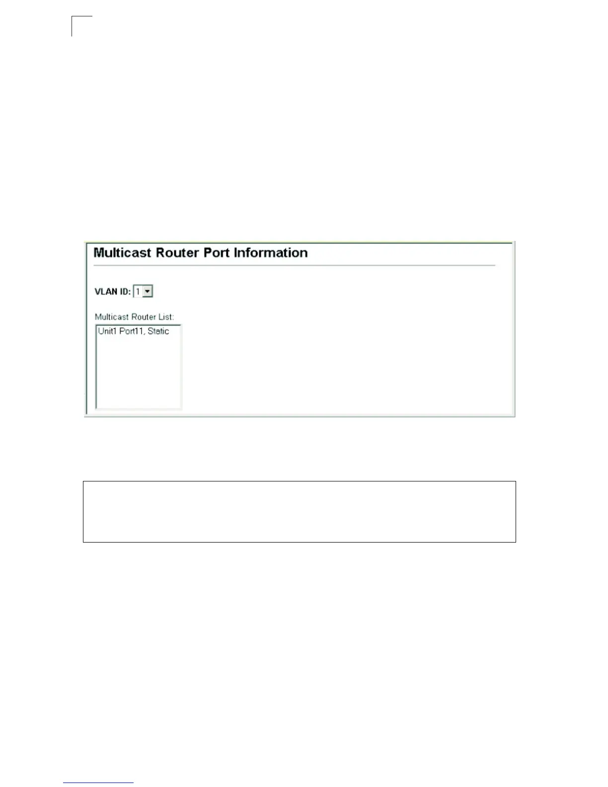 • Multicast Router List – Multicast routers dynamically discovered by this switch or