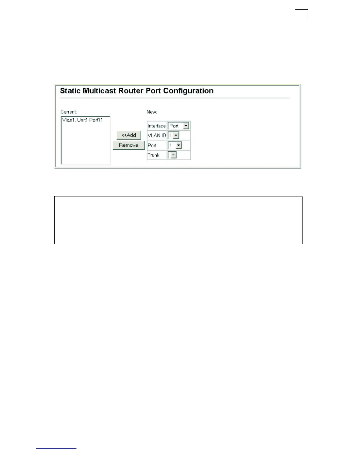 • Port or Trunk – Specifies the interface attached to a multicast router.