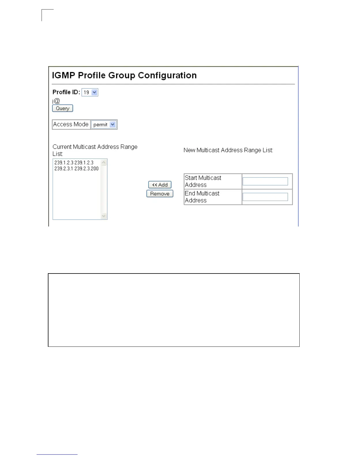 Console(config-igmp-profile)#range 239.2.3.1 239.2.3.200
