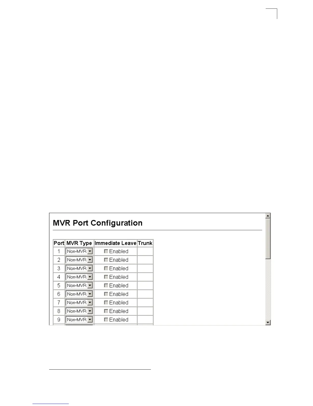 - Non-MVR – An interface that does not participate in the MVR VLAN. (This is the