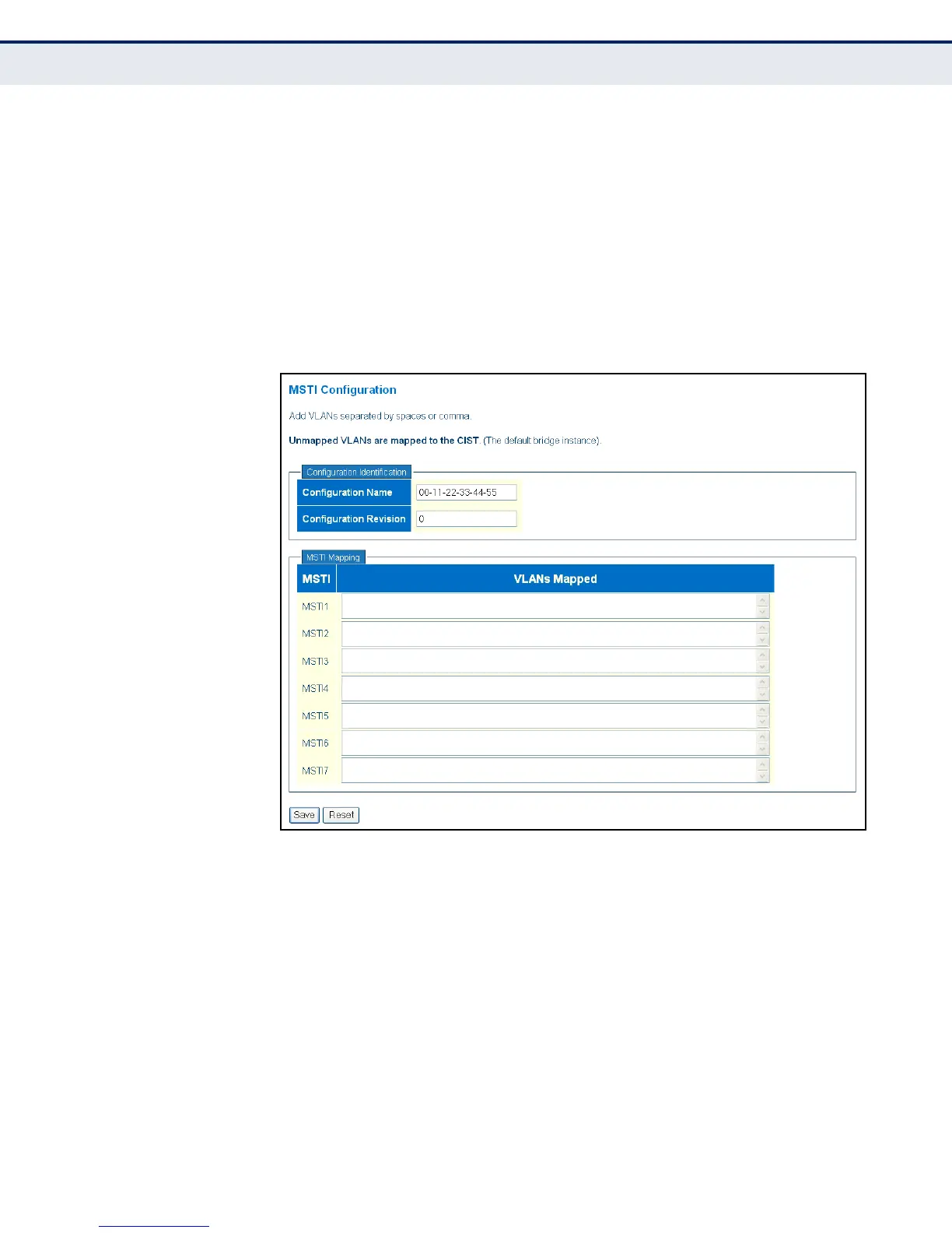 1. Click Configuration, Spanning Tree, MSTI Mapping.