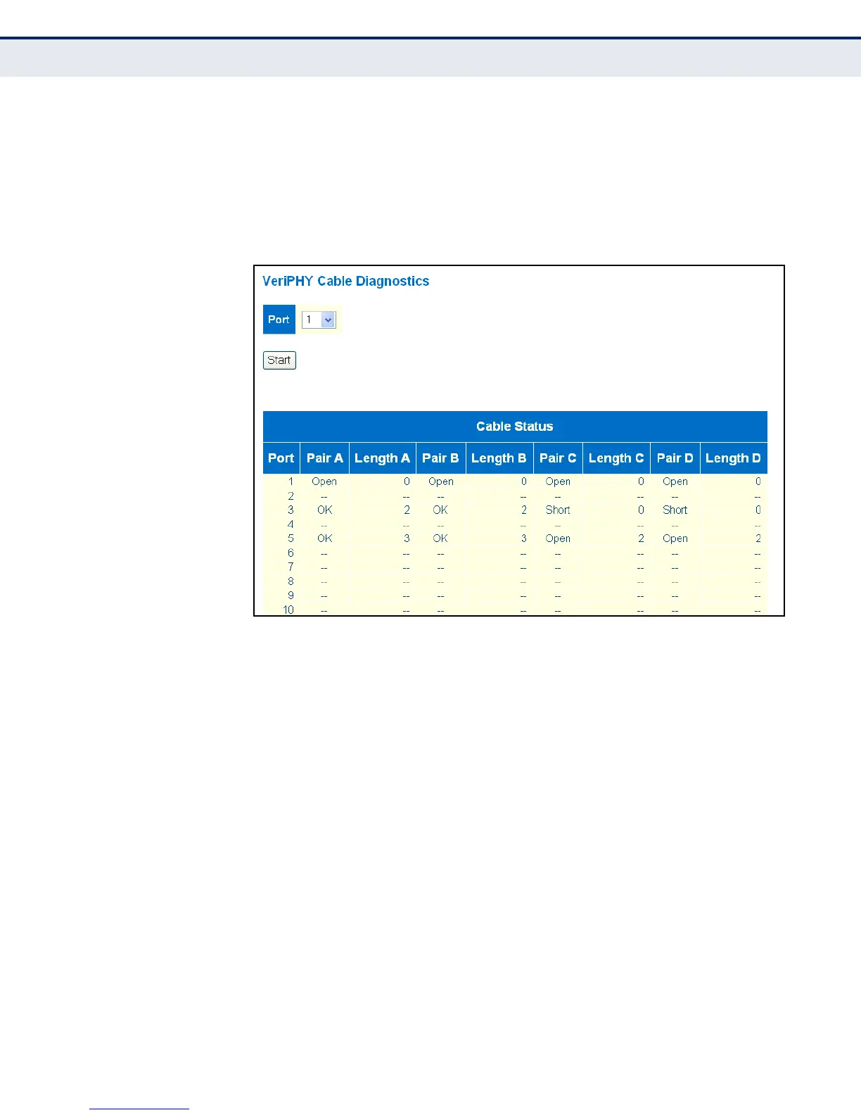 diagnostics results in the cable status table. Note that VeriPHY is only