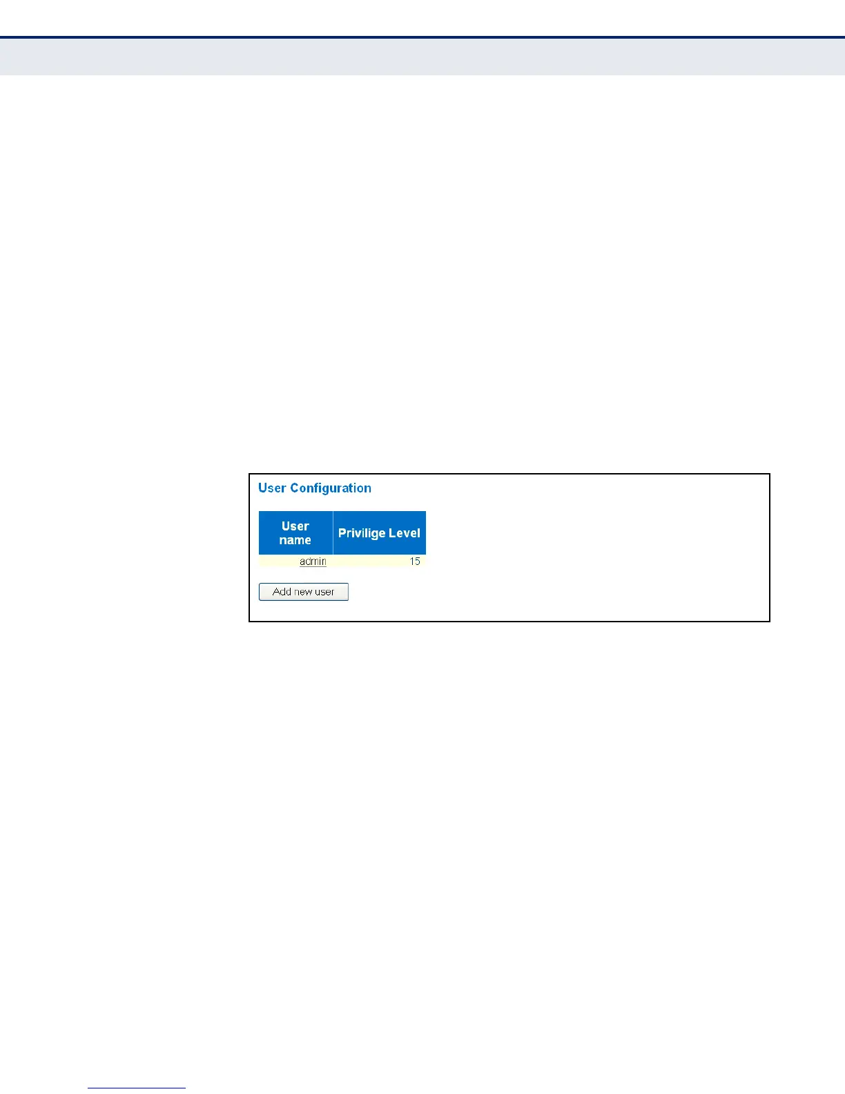 ◆ Privilege Level – Specifies the user level. (Options: 1 - 15)