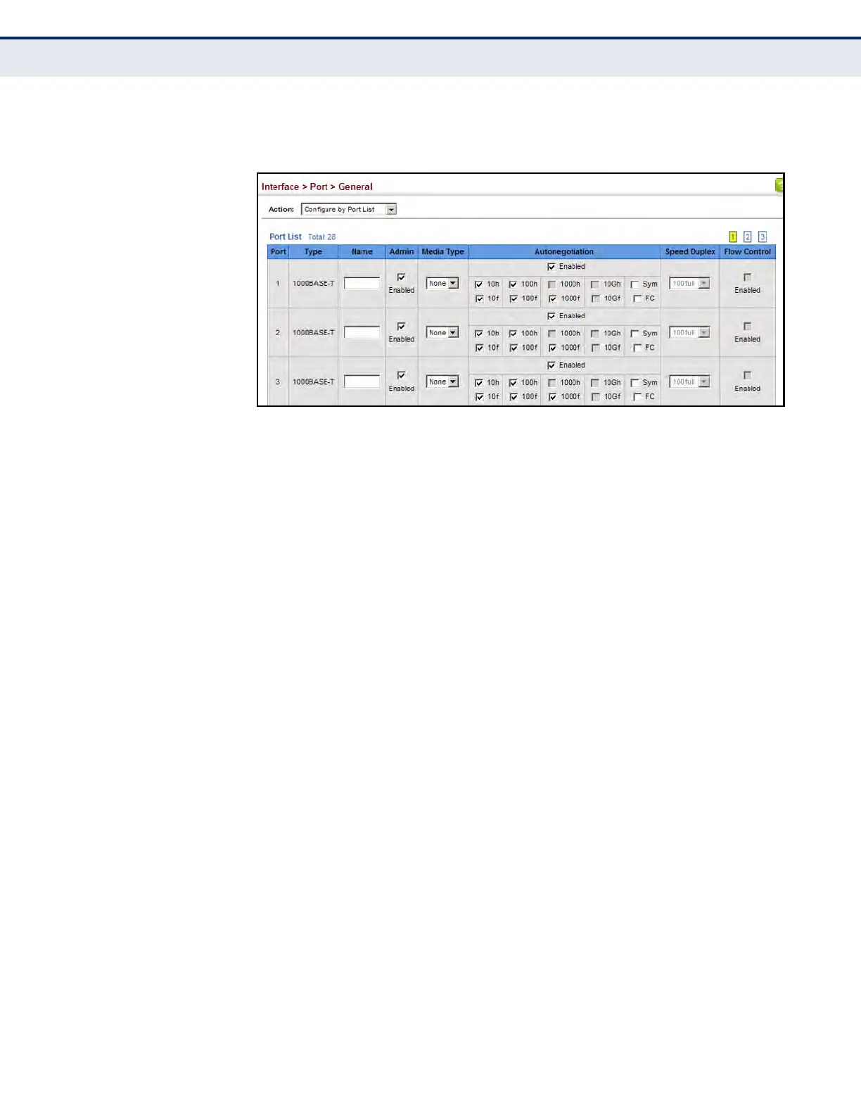 capabilities to advertise, or manually fix the speed, duplex mode, and flow