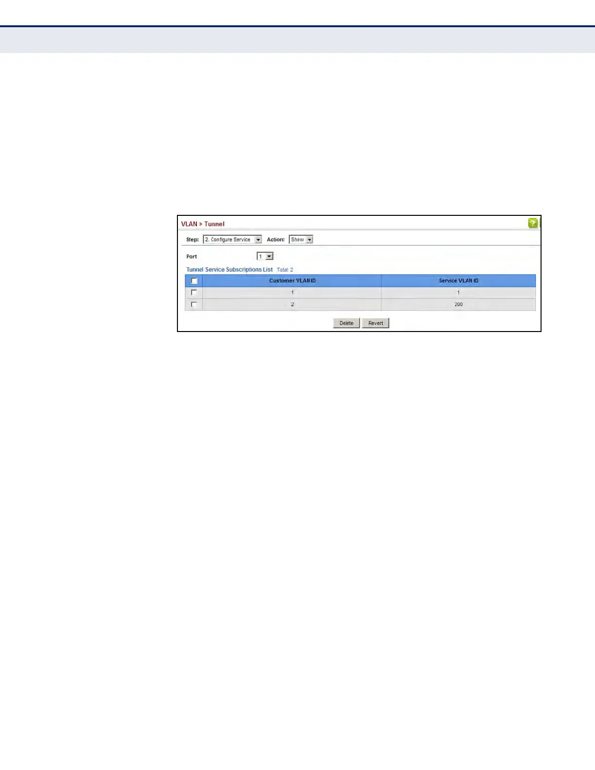 up a QinQ tunnel on the switch. Then use the VLAN > Tunnel (Configure