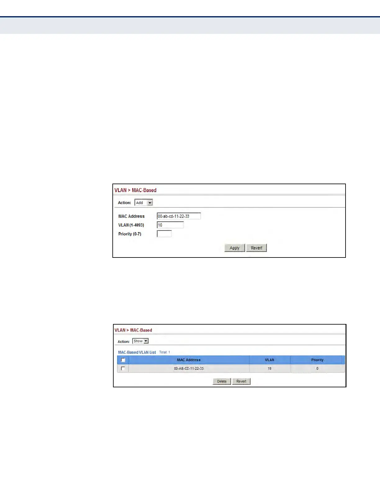 Figure 89: Showing MAC-Based VLANs