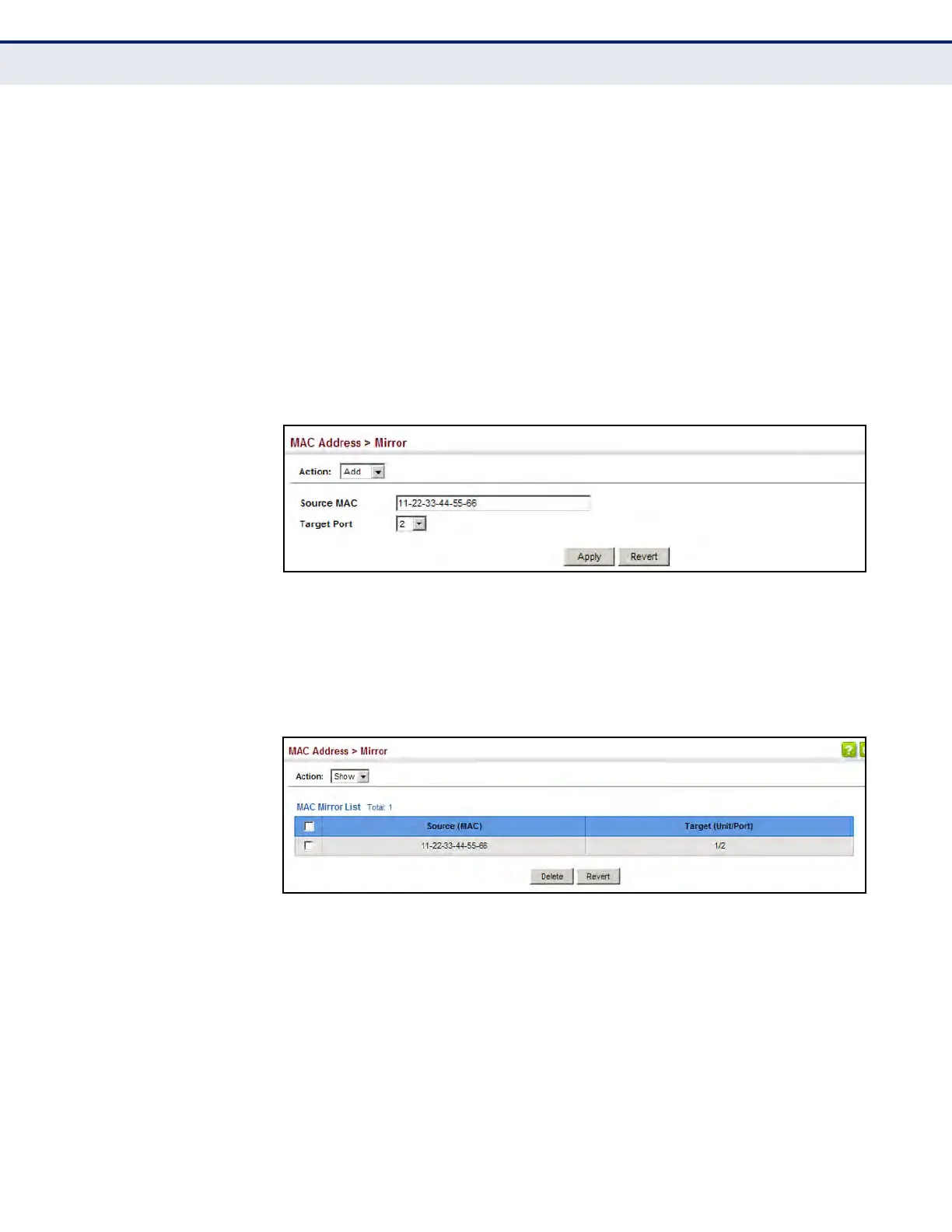 1. Click MAC Address, Mirror.