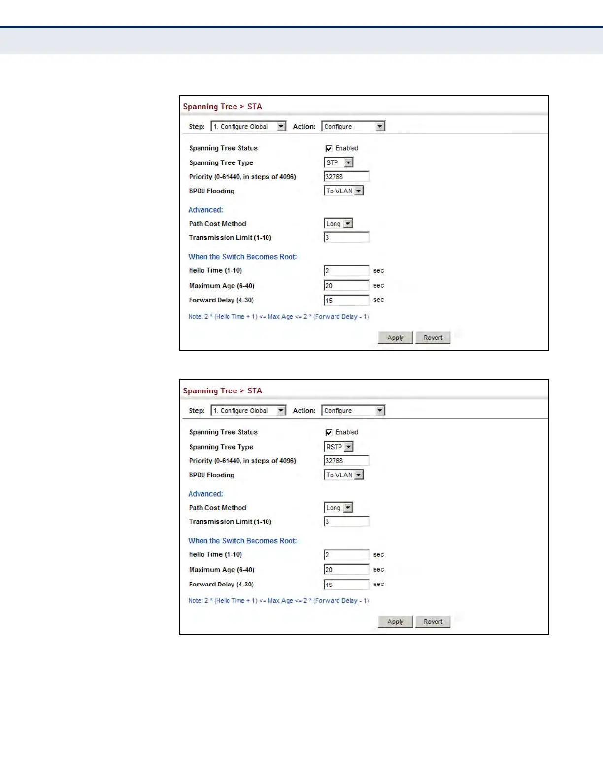 Figure 107: Configuring Global Settings for STA (RSTP)